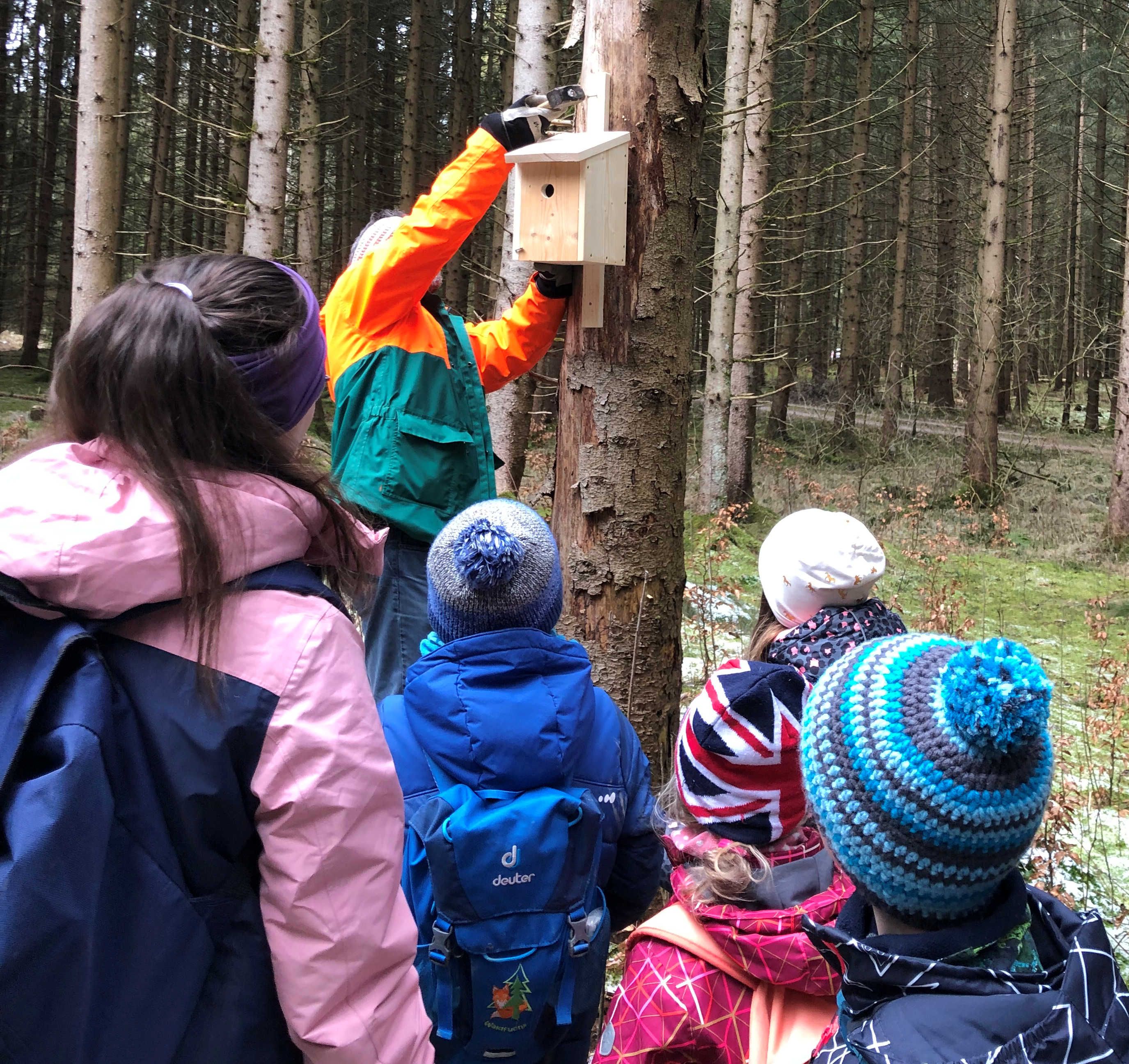 Februar: Wir hängen unsere selbst gebauten Nistkästen im Wald auf