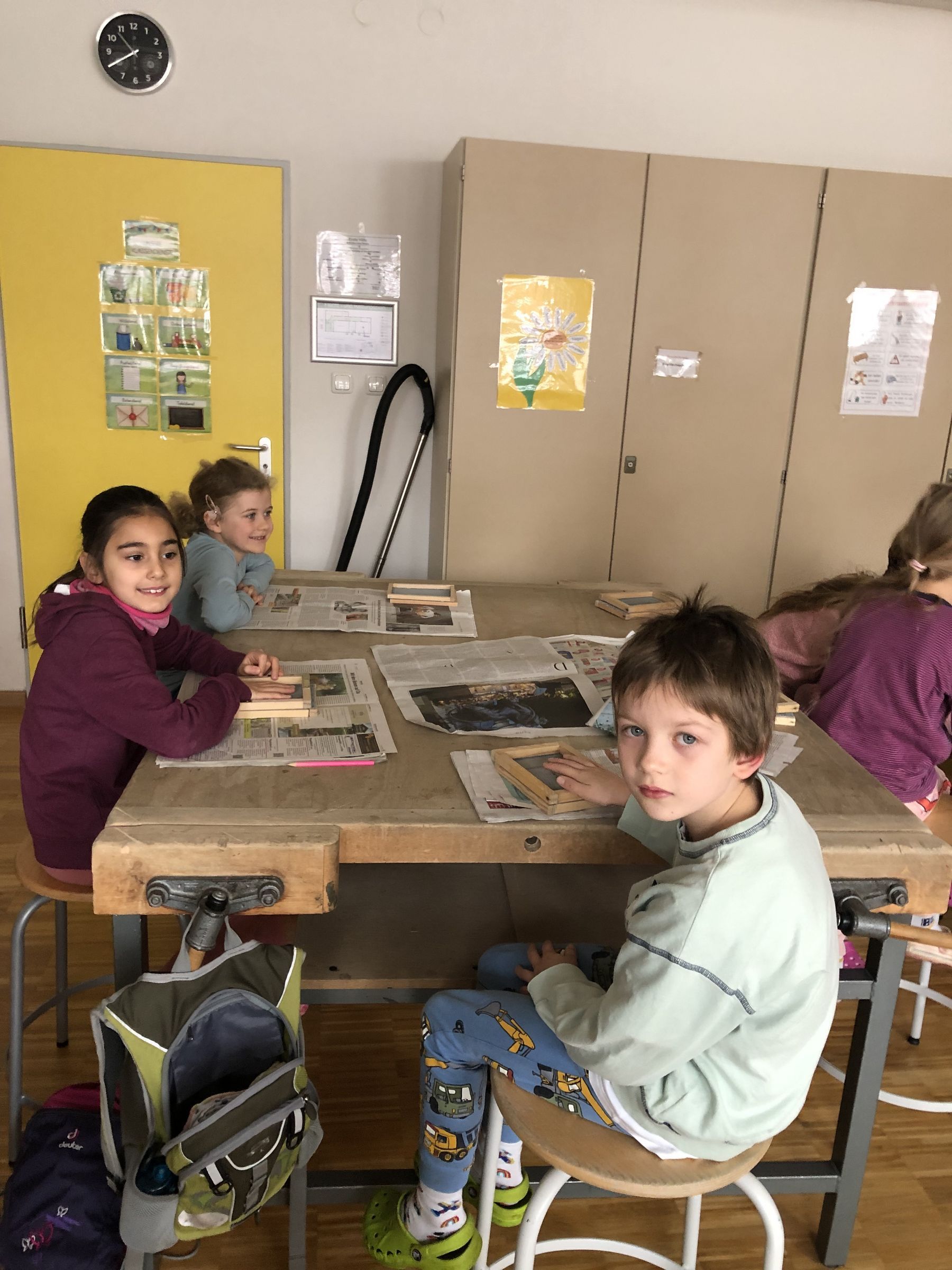 Es hat uns großen Spaß gemacht, Papier zu schöpfen! Das wollen wir bald mal wieder machen. Wir sind ja jetzt schon Profis!