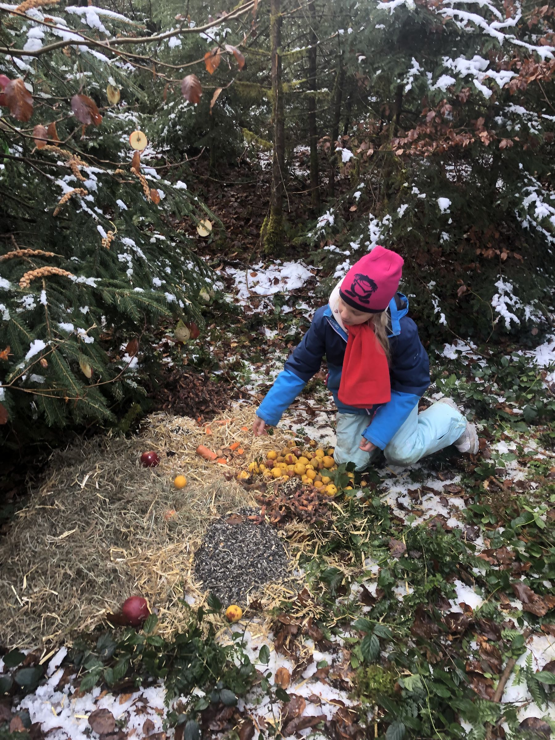 So gestärkt machen wir uns auf den Rückweg. Wir sind gespannt, ob die Tiere unsere Gaben finden. Vielleicht besuchen wir sie bei einem Spaziergang an den Weihnachtstagen!