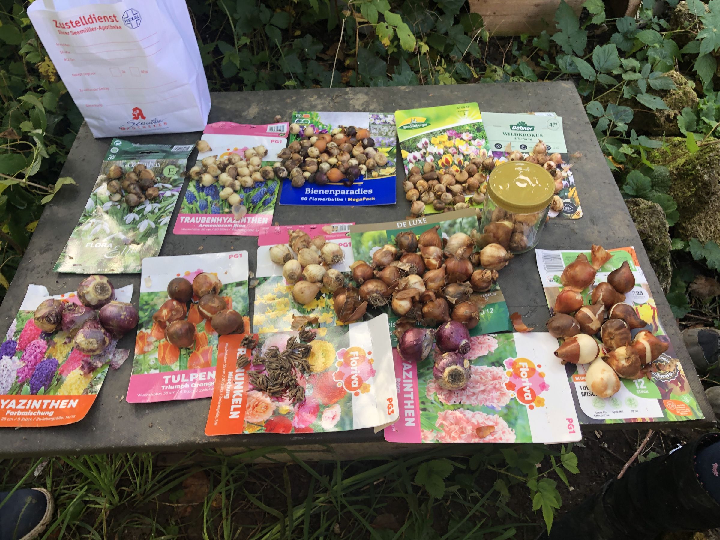Wir haben viele verschiedene Blumenzwiebeln mitgebracht: