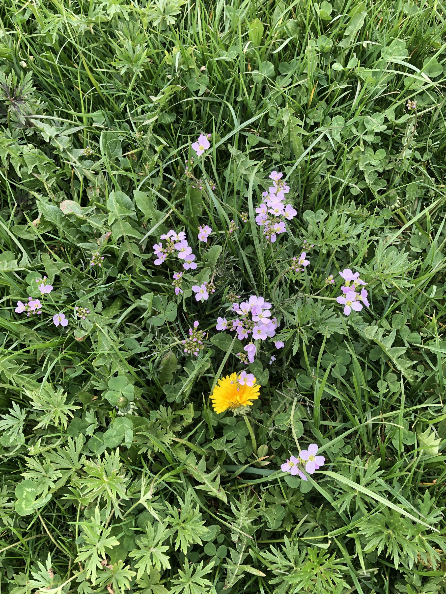 Frühlingsveilchen, Löwenzahn, Gänseblümchen, kriechender Günsel und Wiesenschaumkraut blühen schon.