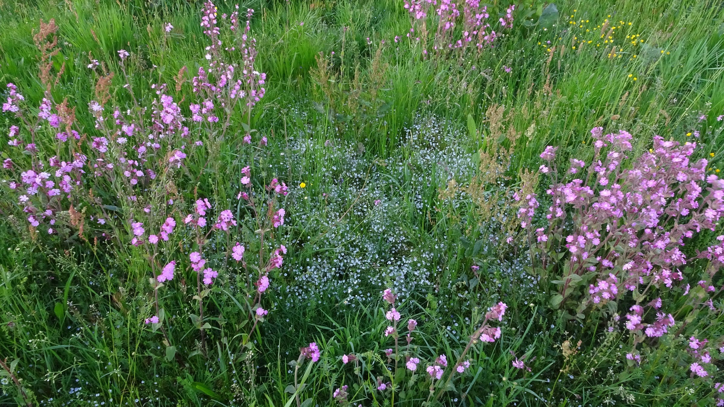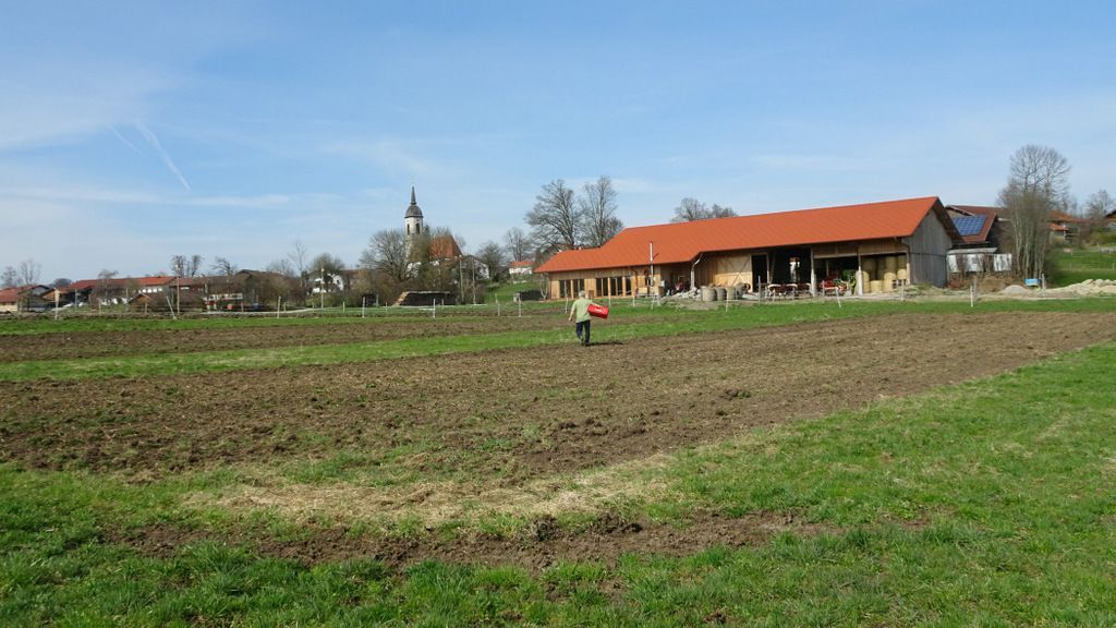 Die erste Einsaat am 17. März 2017: eine Blumenwiese auf dem HahnHof in der Mischung 70% Gras und 30% Blumen.