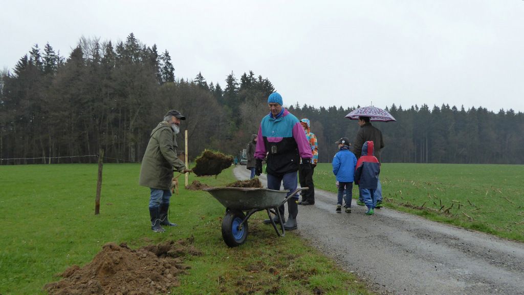 Nach einer kurzen Begrüßung durch den Vorsitzenden der Ortsgruppe Holzkirchen und den ersten organisatorischen Tipps des unterstützenden Gartenbauers Uli Schaffler aus Roggersdorf beginnt die Arbeit, ...