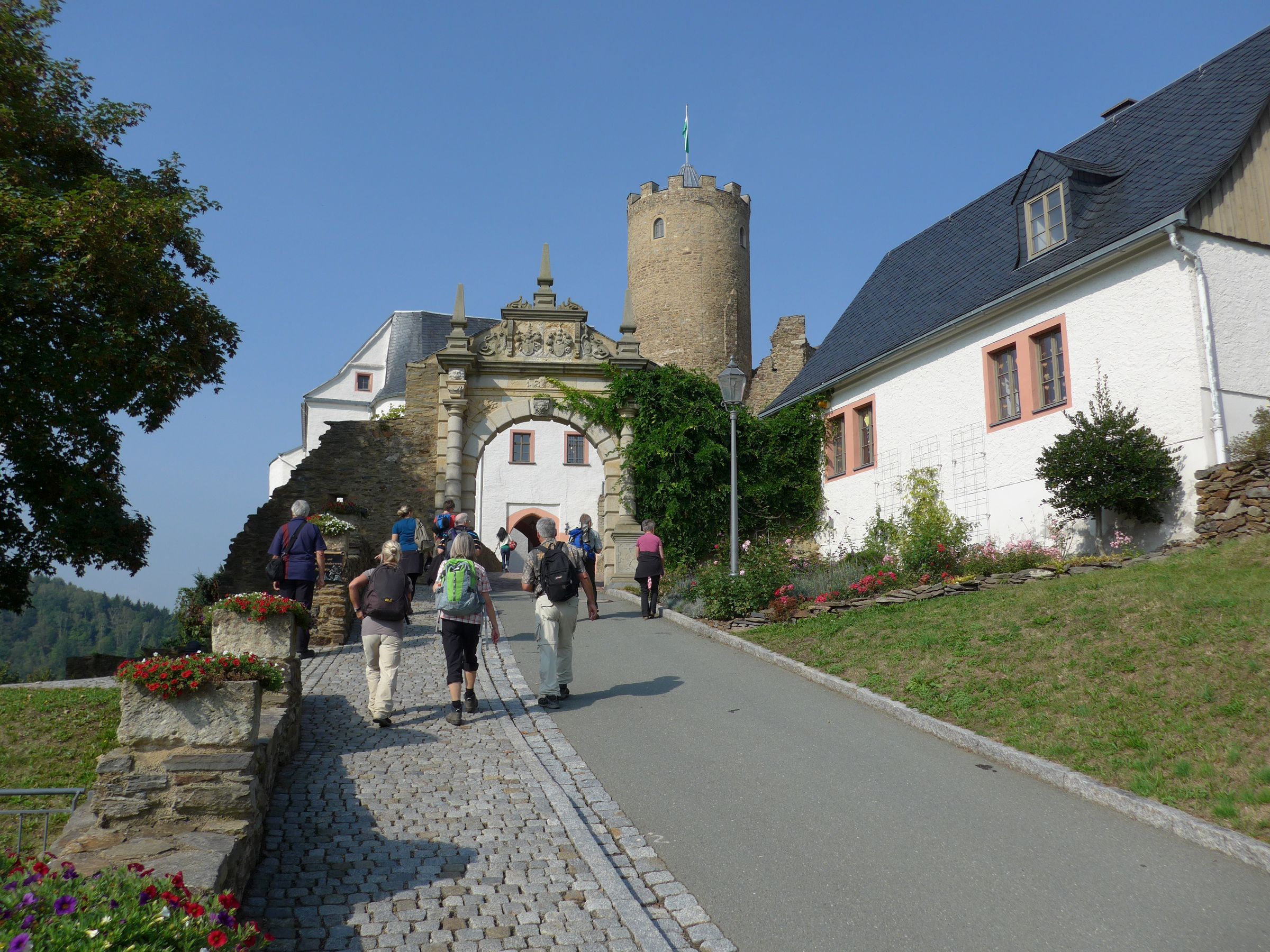 Nach gut 2 stündiger Wanderung erreichten wir die Burg Scharfenstein, auf einem Bergsporn hoch über dem Zschopautal.