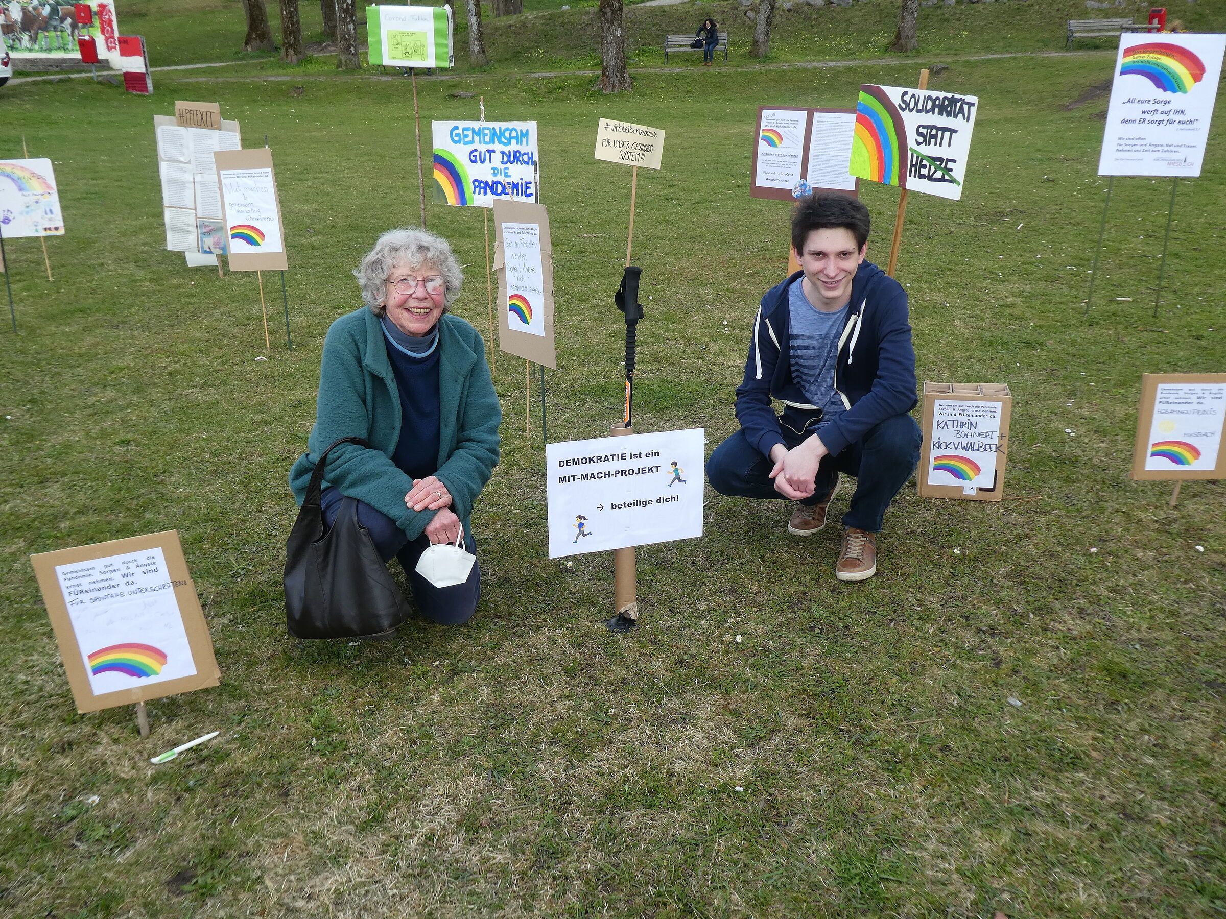 Am 21. April 2021 fand auf Initiative der Grünen im Waitzinger Park eine Aktion Schilder-Aufstellen statt. Jeder konnte ein Schild mit seiner Botschaft mitbringen und dort zwischen 15 und 17 Uhr aufstellen.