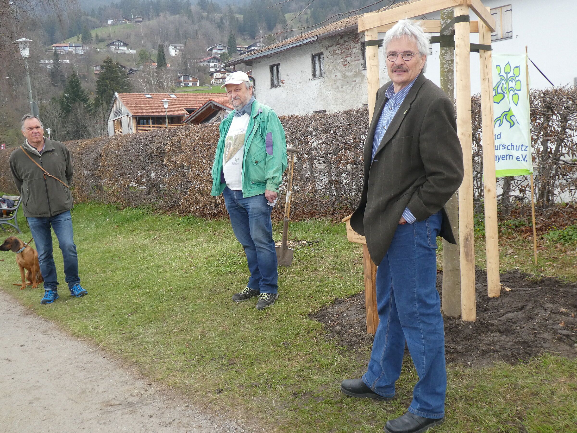 Die Pflanzaktion musste Corona-bedingt in kleinem Kreis stattfinden. Neben Richard Mergner, dem Landesvorsitzenden des BN, waren Bürgermeister Franz Schnitzenbaumer und Alfons Rauch für die Ortsgruppe Schlierachtal anwesend. Franz Schnitzenbaumer lobte die Arbeit von Verbänden, wie dem BUND Naturschutz, wies auf die Wichtigkeit von Bäumen im Ortsbereich hin und bedankte sich sehr herzlich für die Baumspende des BN. Der Landesvorsitzende Richard Mergner lobte die Arbeit der BN Kreisgruppe Miesbach, die sich von Anfang an sehr kämpferisch und mit hoher Qualität für die Belange der Natur einsetzte. Ob gegen die Erschließungspläne rund um die Rotwand, beim Einsatz gegen eine Müllverbrennungsanlage im Oberland, bei wichtigen Volksentscheiden, dem Kampf gegen Gentechnik und für den ökologischen Landbau: die BN Kreisgruppe war unter ihren bisher 3 Vorsitzenden Dr. Georg Seitz, Werner Fees und Manfred Burger immer sehr aktiv.